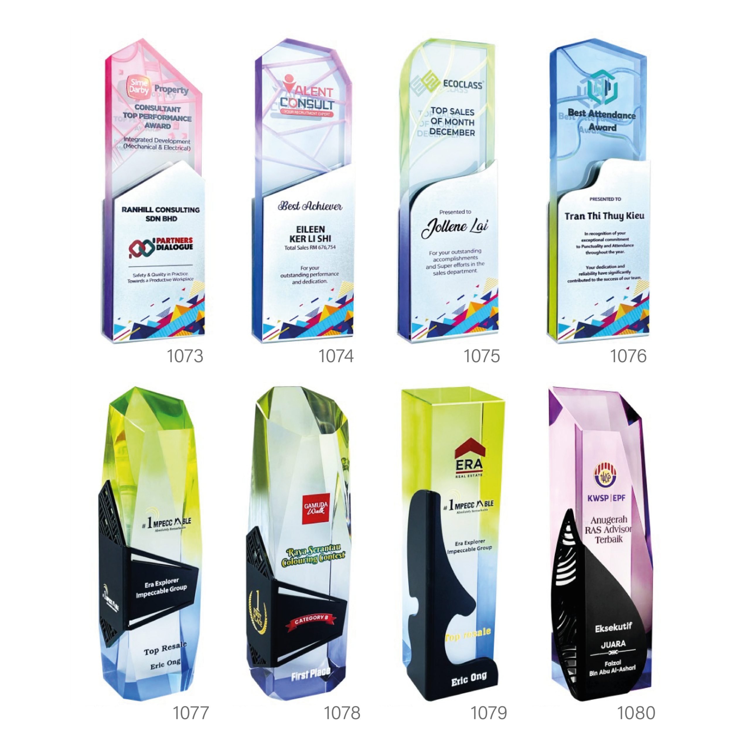 Stylish acrylic award with a slanted-top design and vibrant glowing edge. Fully customizable. No minimum order required. Perfect for all types of recognition.