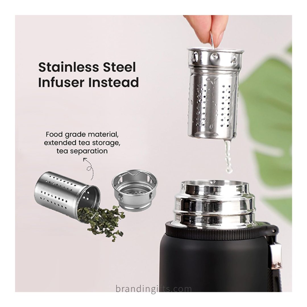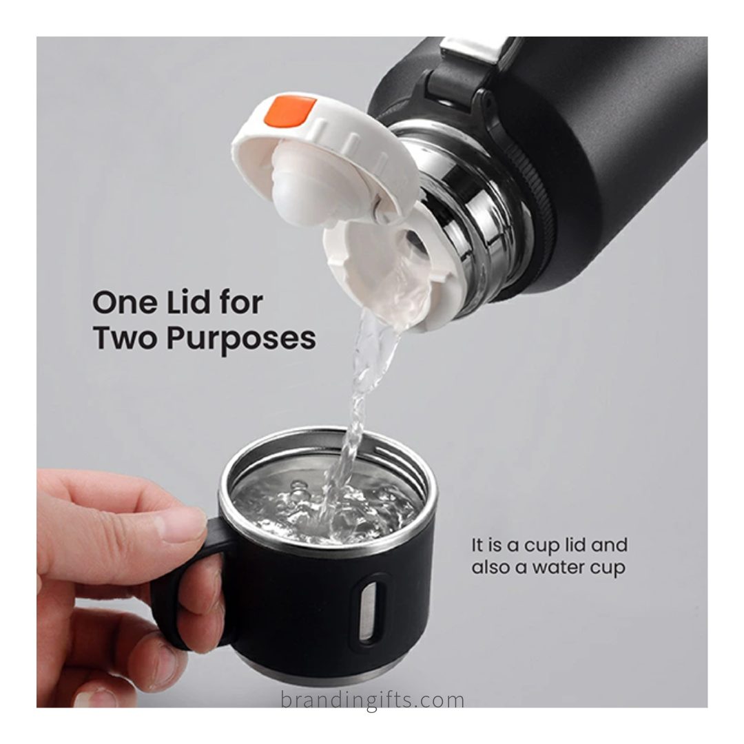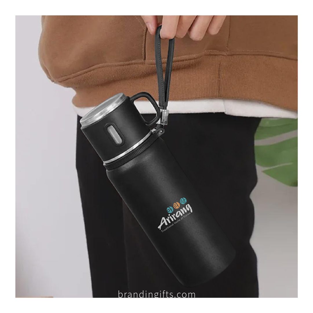 Its sturdy handle ensures easy portability, while the sleek design offers a professional and elegant look. The flask is perfect for corporate giveaways, employee appreciation gifts, client promotions, seminars, and events.