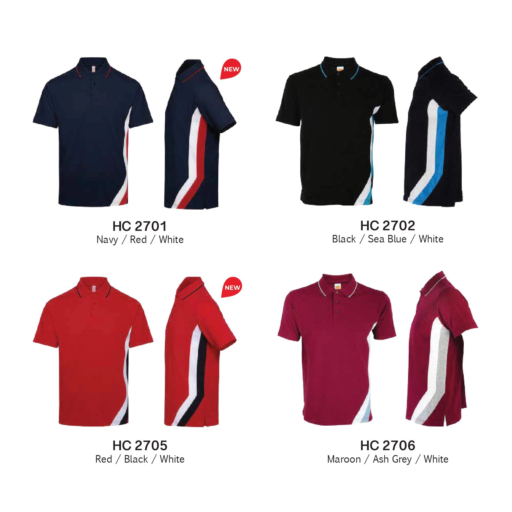 Navy/Red/White, Black/Sea Blue/White, Red/Black/White, Maroon/Ash Grey/White, Ash Grey/Sea Blue/White, Forest Green/Ash Grey/White, Navy Pro/Ash Grey/White