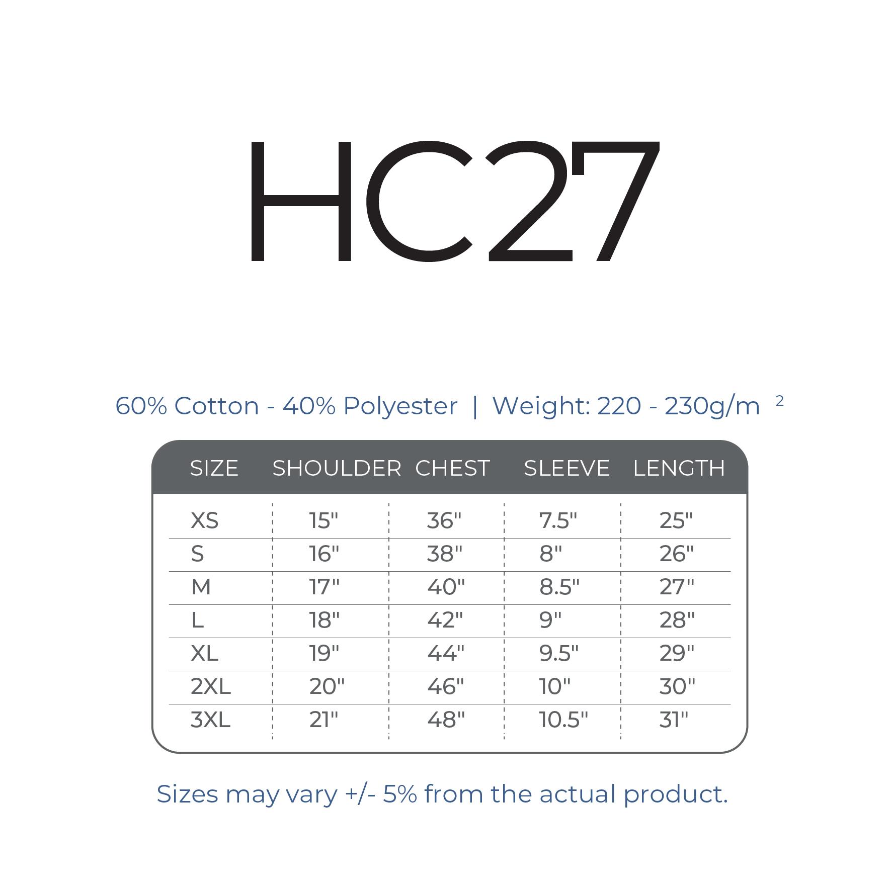 Sizes: XS – 3XL