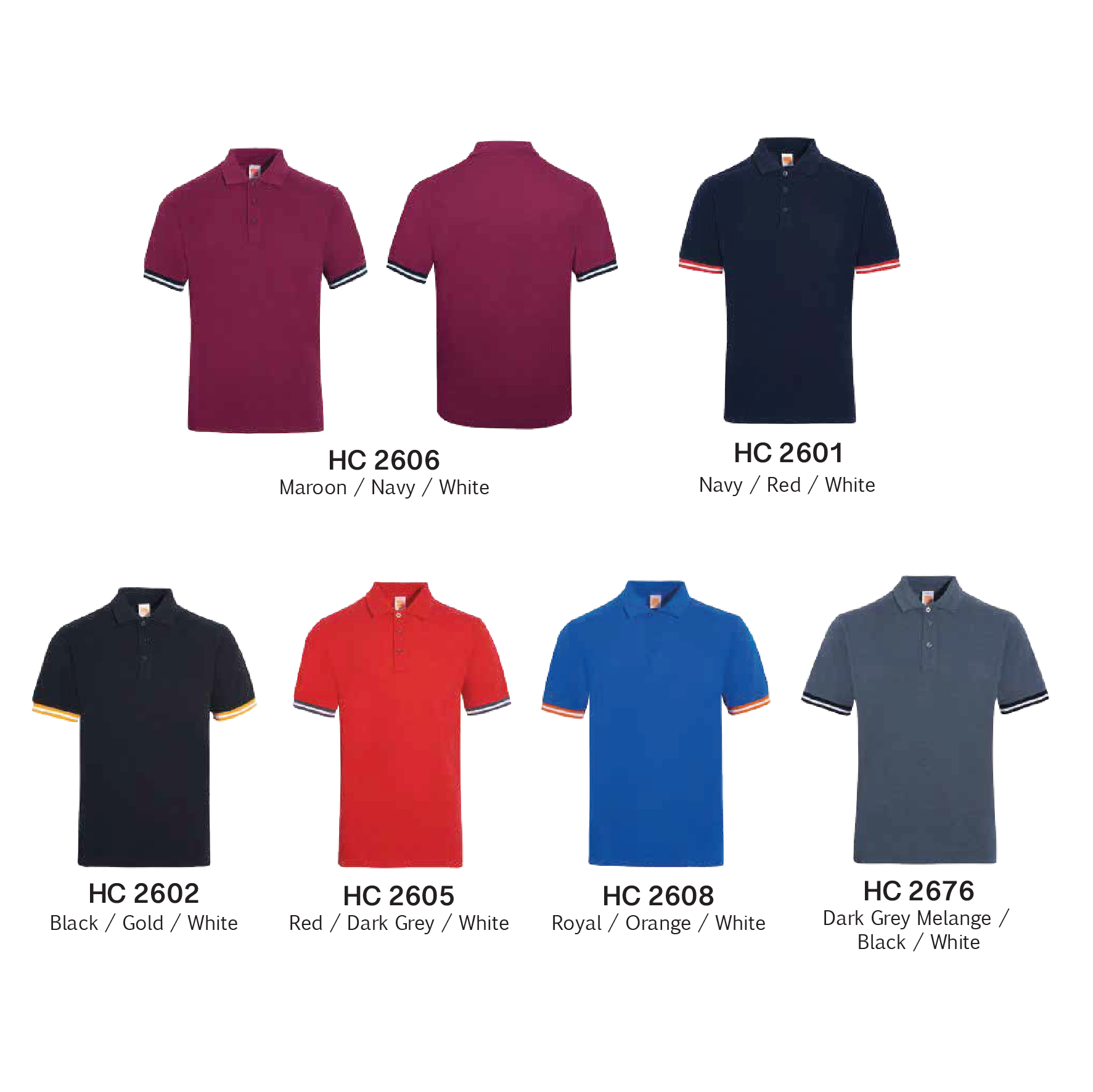 Maroon/Navy/White, Navy/Red/White, Navy/Gold/White, Red/Dark Grey/White, Royal/Orange/White, Dark Grey Melange/Black/White