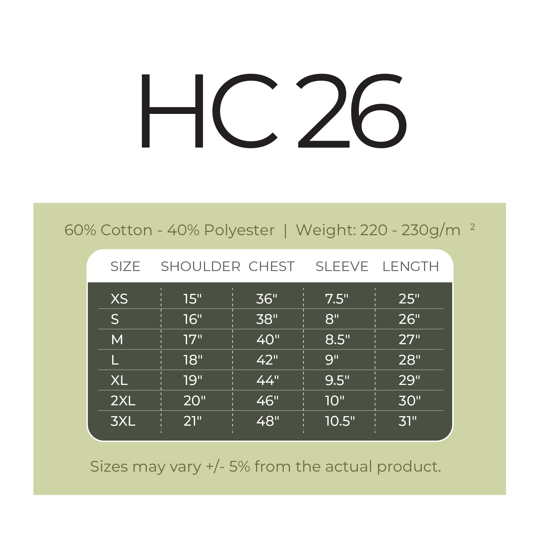 Material: 60% Cotton – 40% Polyester