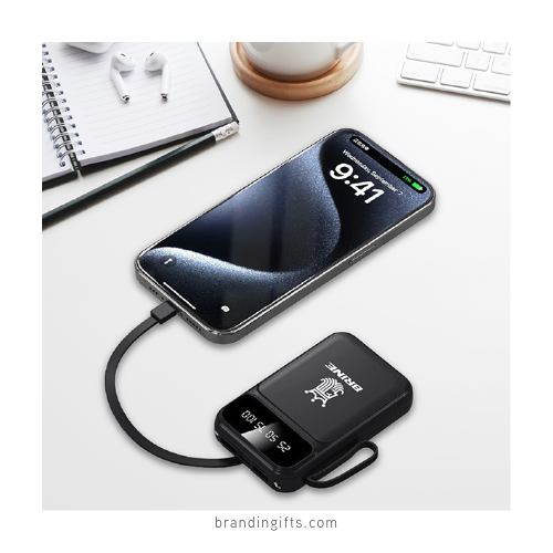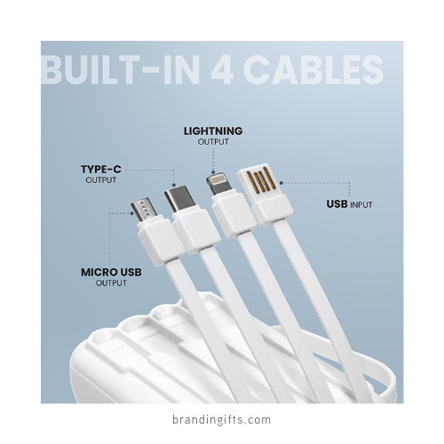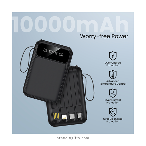 The VOLT Power Bank with Built-in 4 Cables is a smart and efficient charging solution for everyday and travel use. Designed for maximum convenience, it features integrated charging cables compatible with multiple devices, eliminating the need to carry extra wires. Ideal for corporate gifting and promotional campaigns, this power bank can be customized with company branding, making it a practical and high-value tech gift.