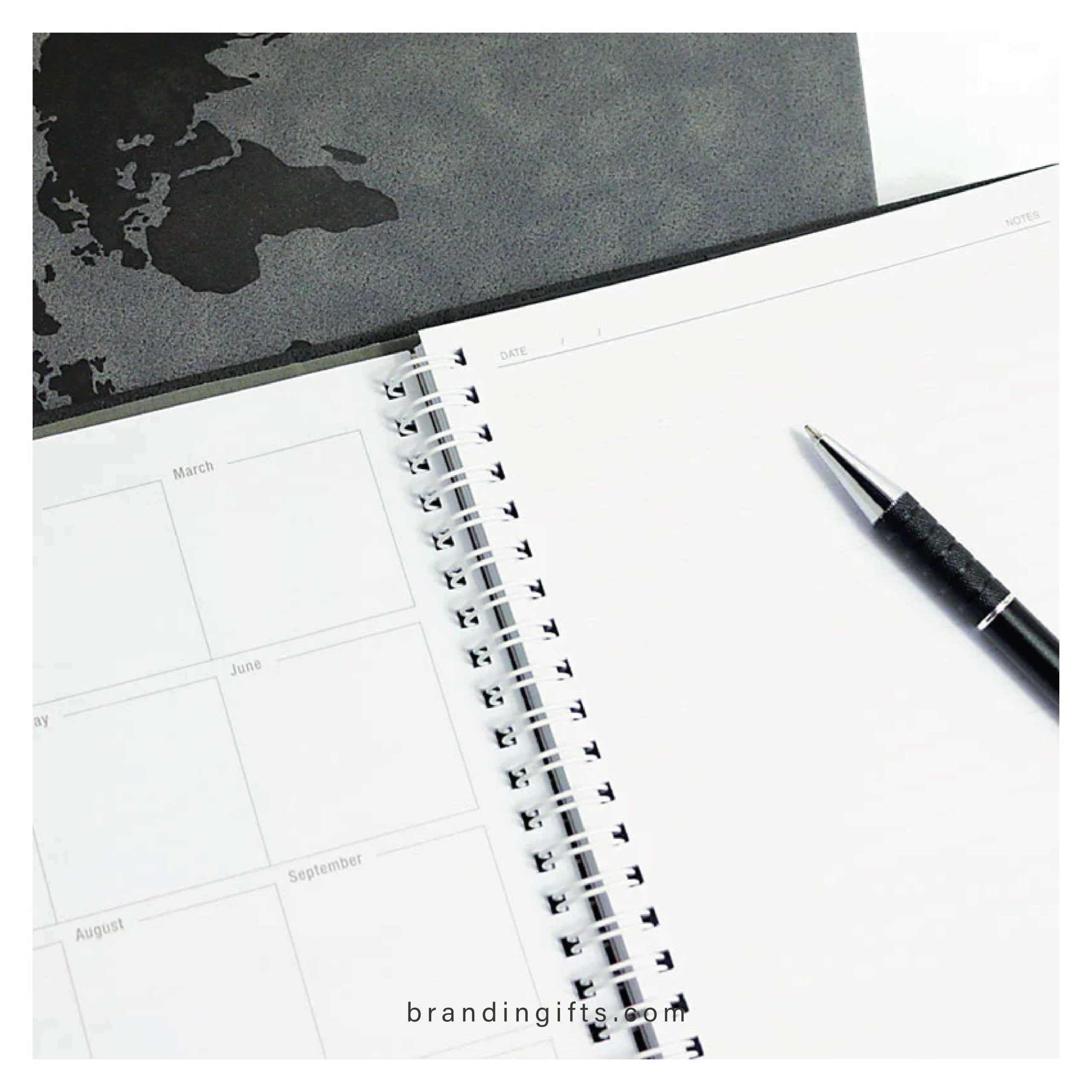 The Worldwide Wire-O Planner features a sophisticated debossed world map design, perfect for global professionals and travel enthusiasts. Crafted with durable Wire-O binding for smooth page turning, this planner offers ample space for schedules, notes, and goals. Ideal for corporate gifting, it can be custom-branded to showcase your company logo, making it a memorable and practical promotional item. Stay organized while inspiring a global mindset with this elegant planner.