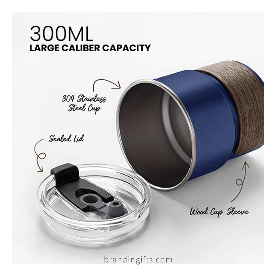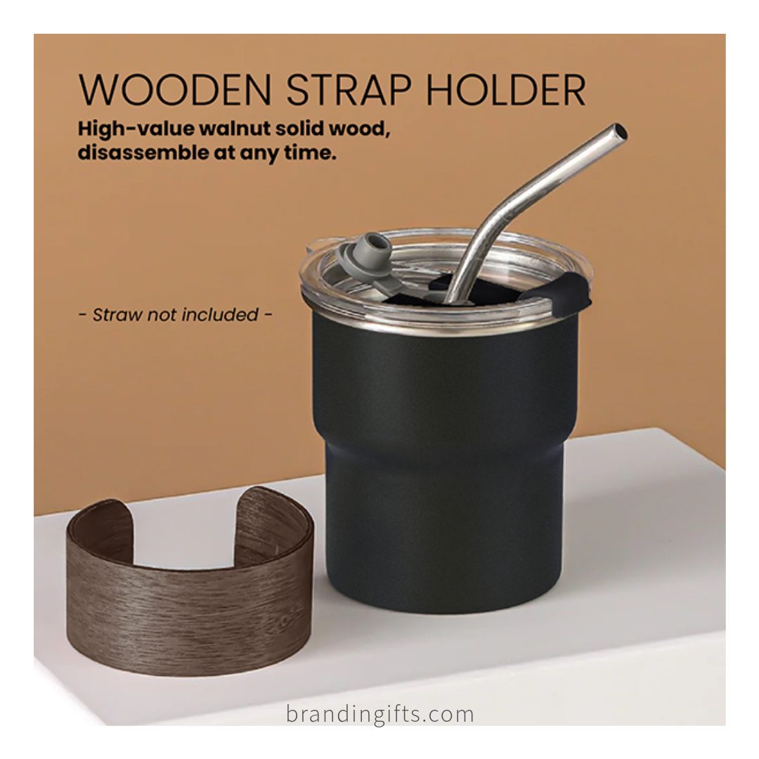 Made from high-quality stainless steel, the mug is built for everyday use and suitable for both hot and cold beverages. It comes with a natural wooden strap holder for a comfortable grip and an elegant touch. The mug also includes a secure seal lid with a straw hole, making it convenient for daily use at the office or on the go.